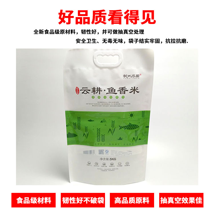 5KG大米真空包装袋,带手提扣,可印刷