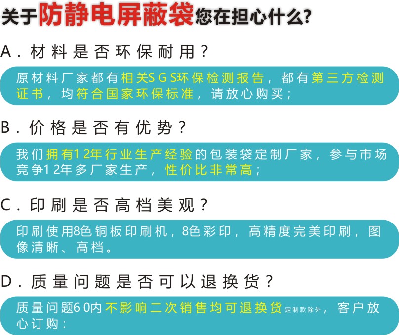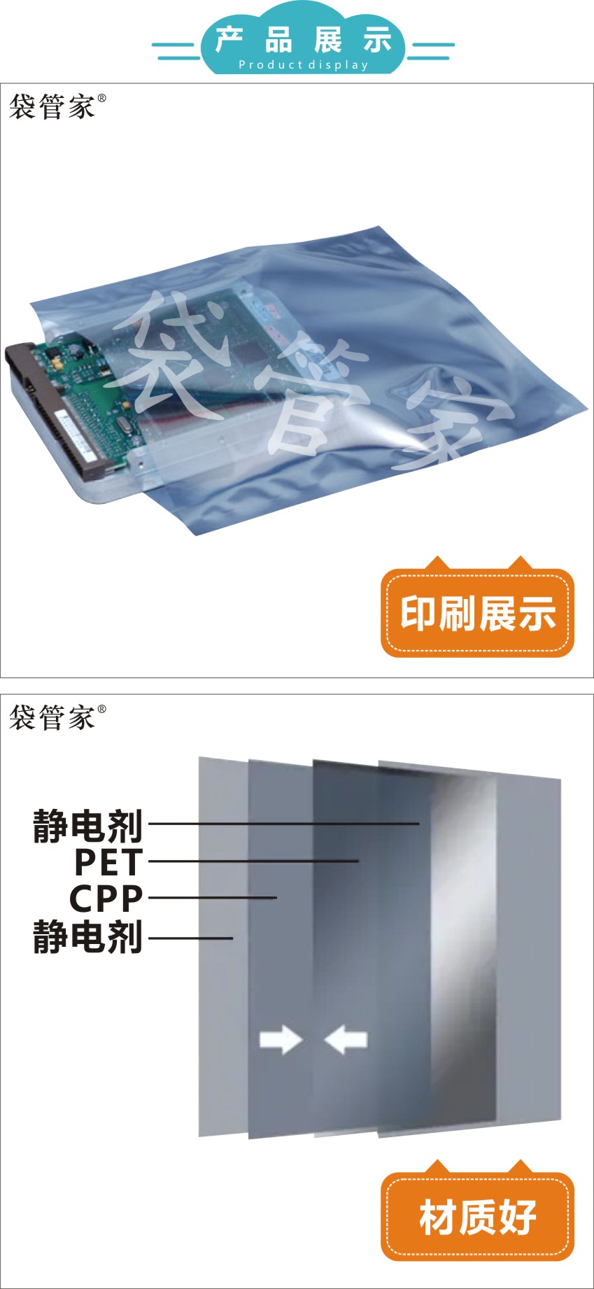 防静电屏蔽袋 防水防潮、安全环保卫生、防静电 尺寸可定制,厚度可定制 厂家直销,尺寸/印刷/材质等均可按需定制