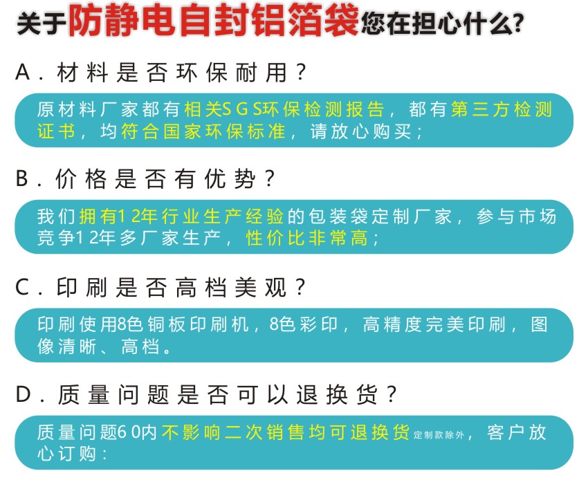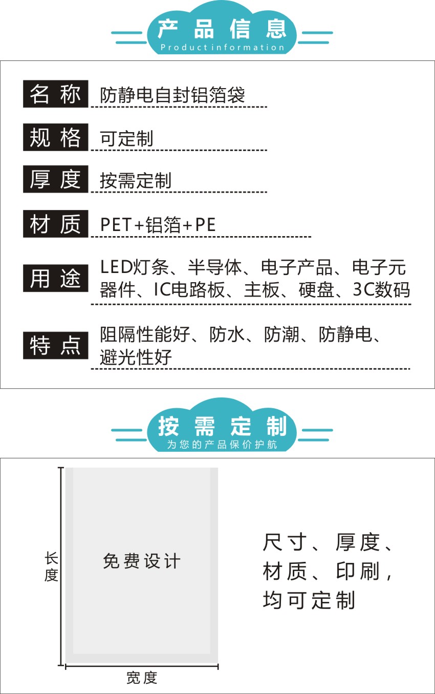防静电自封铝箔袋 防水防潮、安全环保卫生、防静电 尺寸可定制,厚度可定制 厂家直销,尺寸/印刷/材质等均可按需定制