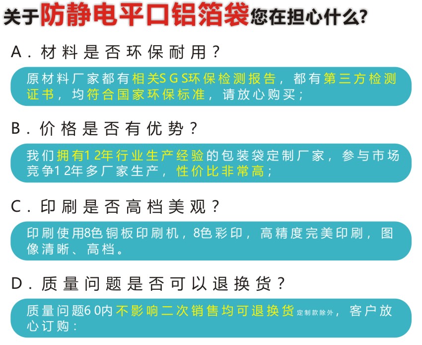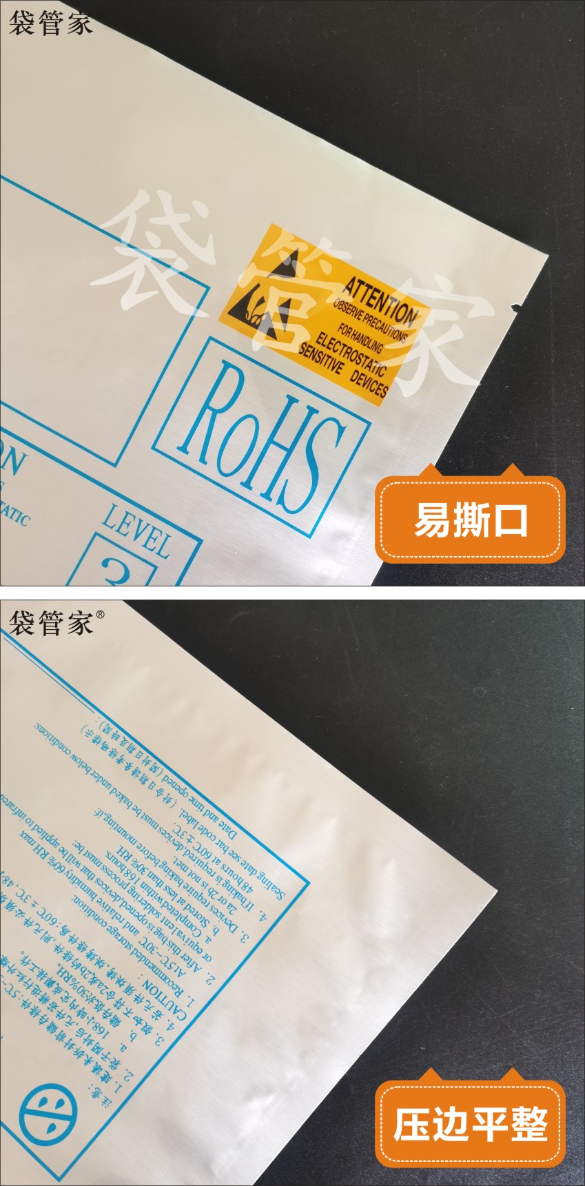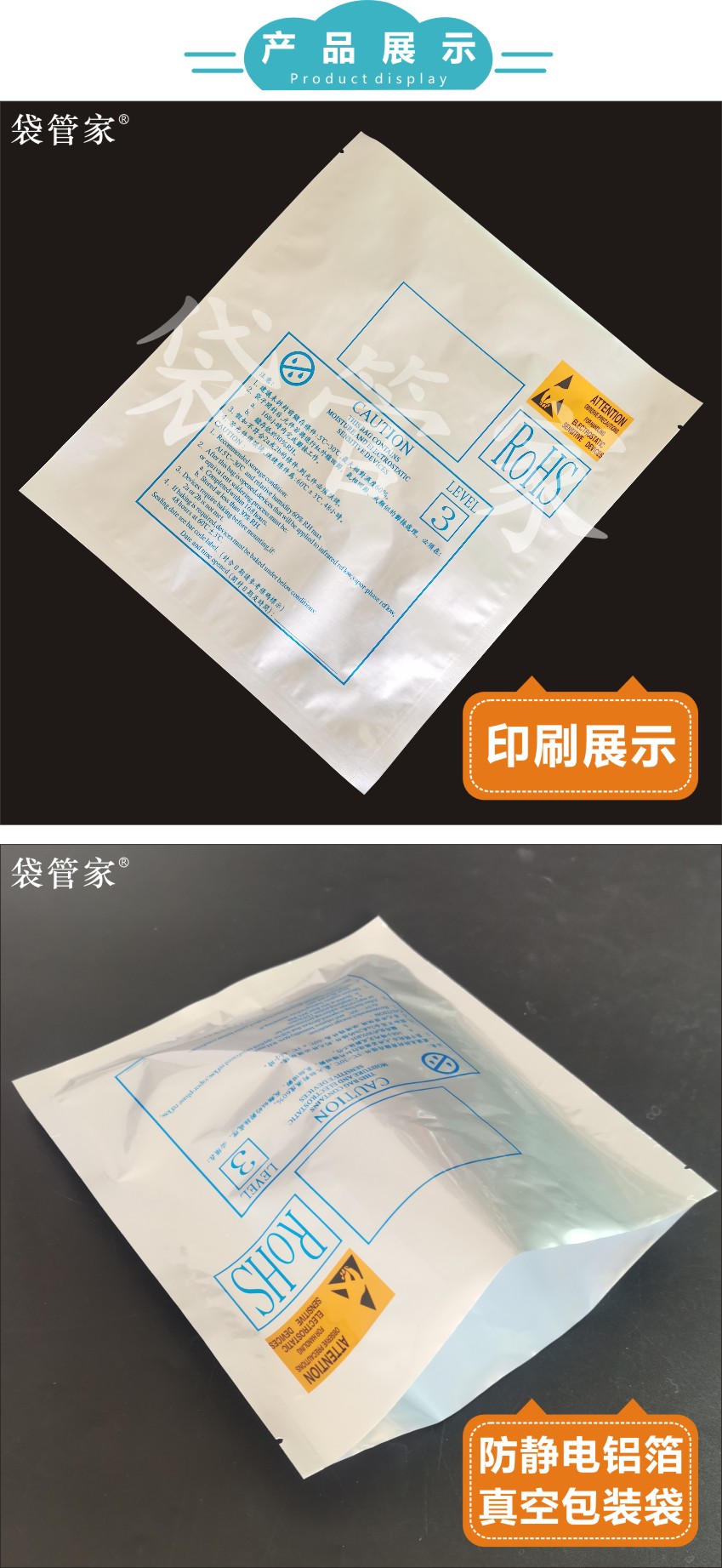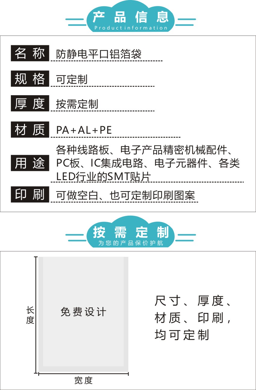 LED灯珠防静电平口铝箔袋