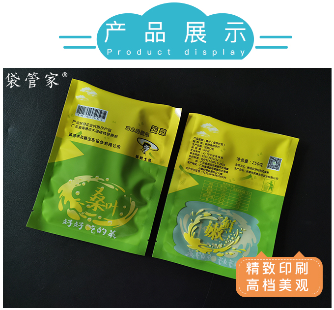 用途:桑叶、桑芽、蔬菜、水果等食品真空保鲜,可放冰箱冷冻;