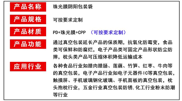 珠光膜阴阳袋/电子产品包装袋